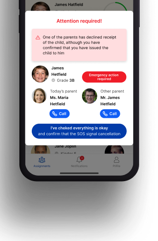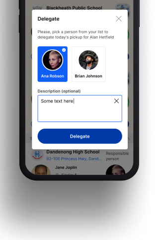 The designated school staff member brings the children out and securely ‘hands’ them over to the assigned person, in order of the car queue, and records the child’s transfer in the School Run app