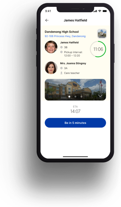 When the driver arrives to drop a child, they enter their car rego and time of arrival into the School Run app
